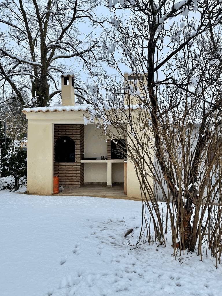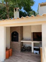 En la parte trasera de la casa, justo al lado de la zona de piscina (totalmente vallada) se encuentra la zona de horno de leña y una barbacoa de grandes dimensiones.